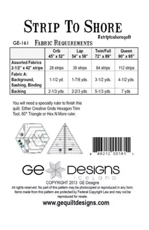 Discover the vibrant and intricate design of the Strip to Shore quilt pattern, perfect for quilters looking to add a splash of color and geometric interest to their projects. This pattern offers options for various bed sizes, including Crib (45in x 52in), Lap (54in x 58in), Twin/Full (72in x 89in), and Queen (90in x 95in). The quilt features a striking array of hexagonal blocks in a spectrum of colors, from soft pastels to bold hues, creating a visually captivating effect. To complete this pattern, you'll need one of the following specialty rulers: JBQ201, Creative Grids CGRJAW4, or CGRT60. The quilt comes in four sizes and is made with 2-1/2" strips, ensuring precision and ease in assembly. Dive into this creative journey with Strip to Shore and bring your quilting vision to life.