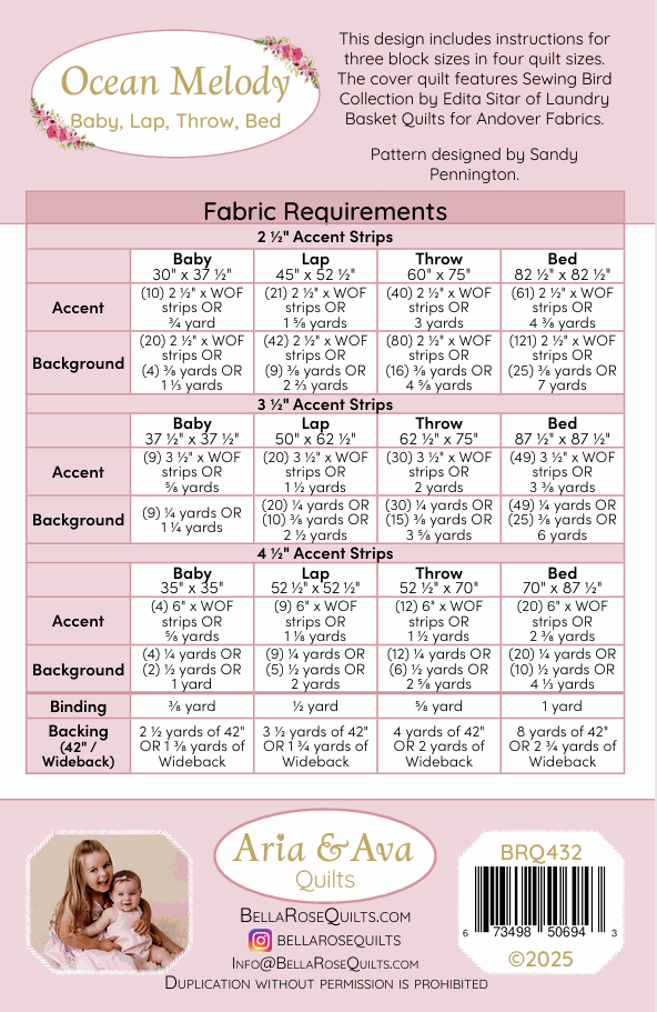 Get ready for a sea breeze inspired crafting adventure with the Ocean Melody Quilt Pattern from Aria & Ava! This delightful design features a beautiful array of half square triangles. Let your creativity bloom with this pattern offered in many different sizes!