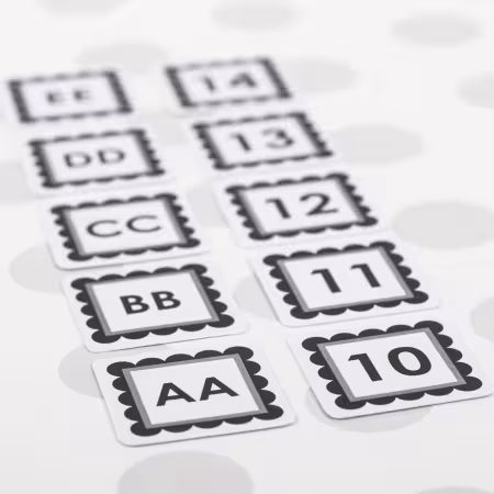 Uou can now go beyond A-Z with the Alphabitties Expansion Pack from It’s Sew Emma! When patterns call for pieces marked beyond A-Z or 1-9, these adorable squares are up for the task. Perfect for using them as row markers.