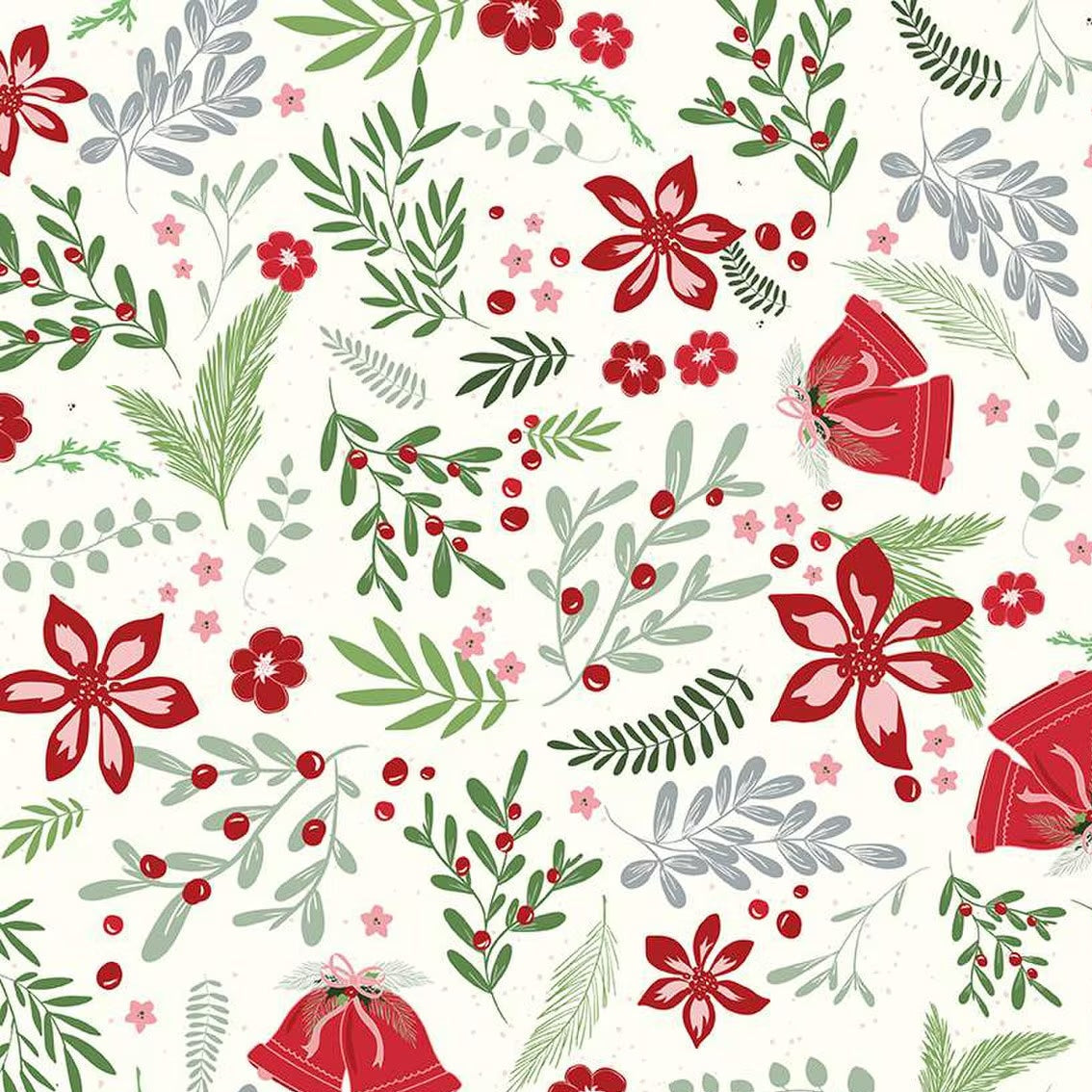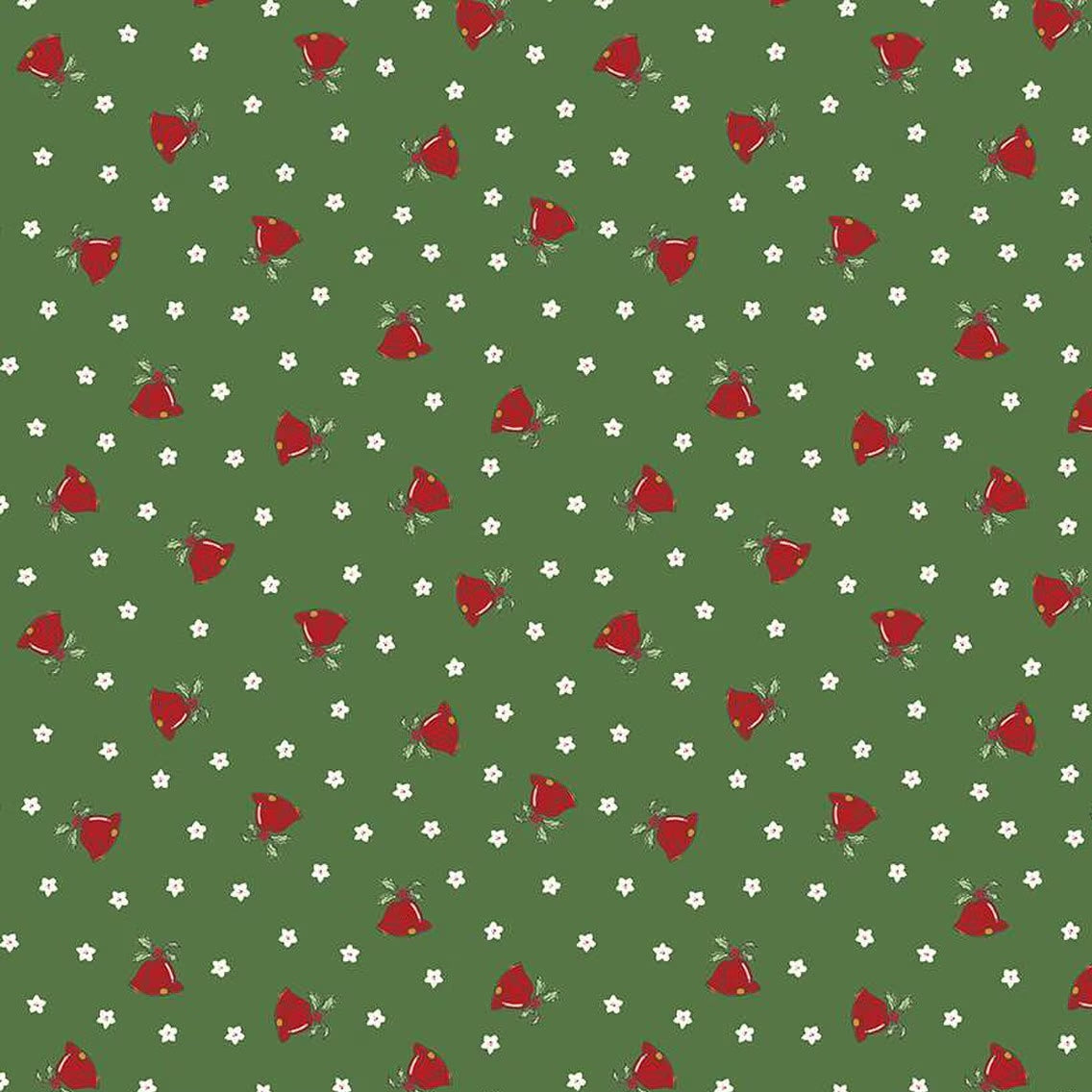 Mistletoe & Holly Mistle Scattered Bells Clover C16404-CLOVER by Beverly McCullough for Riley Blake Designs -Sold in 1/2 Yard Increments