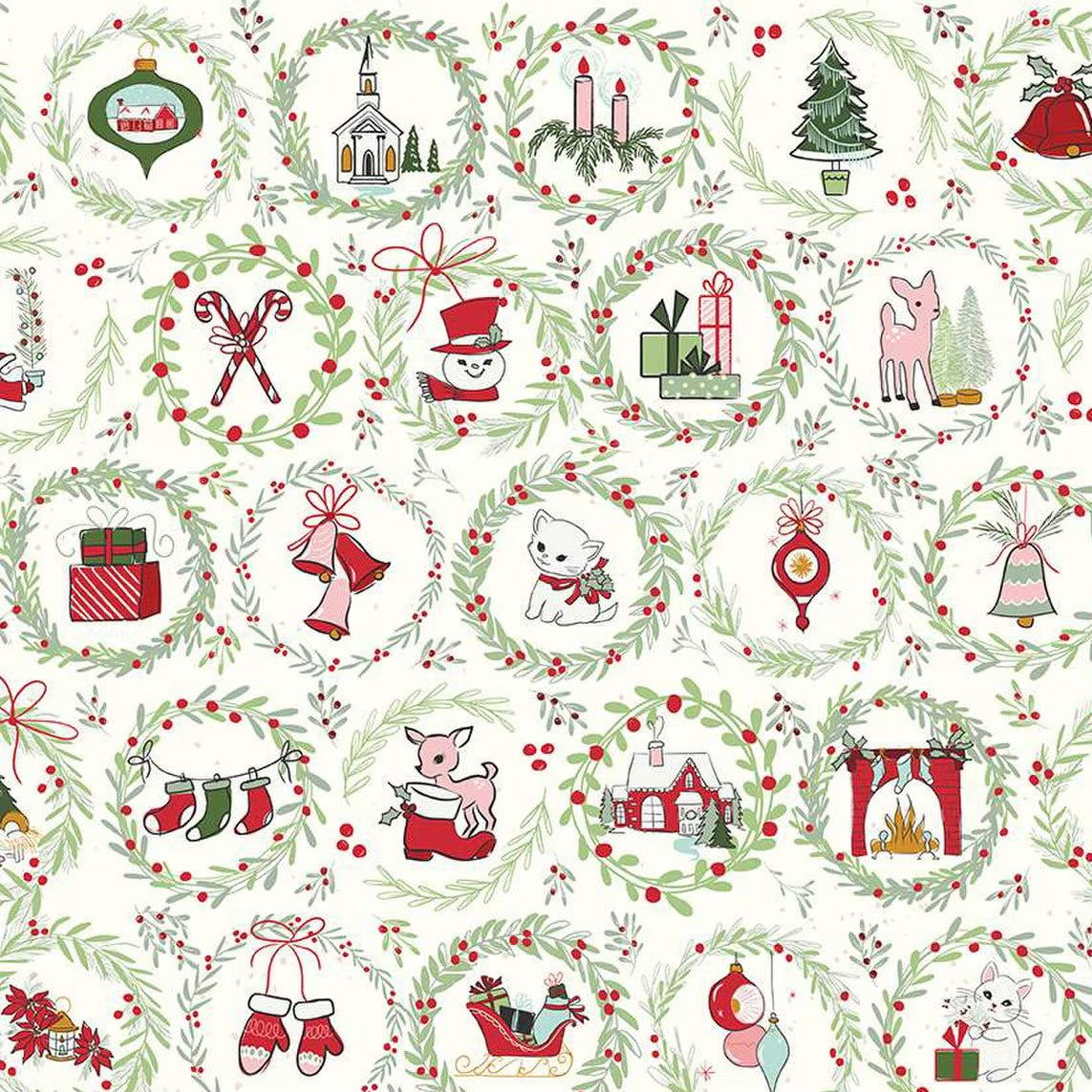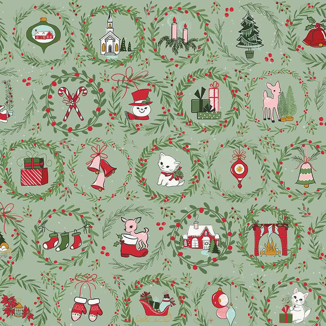 Mistletoe & Holly Wreaths Sage C16401-SAGE by Beverly McCullough for Riley Blake Designs -Sold in 1/2 Yard Increments