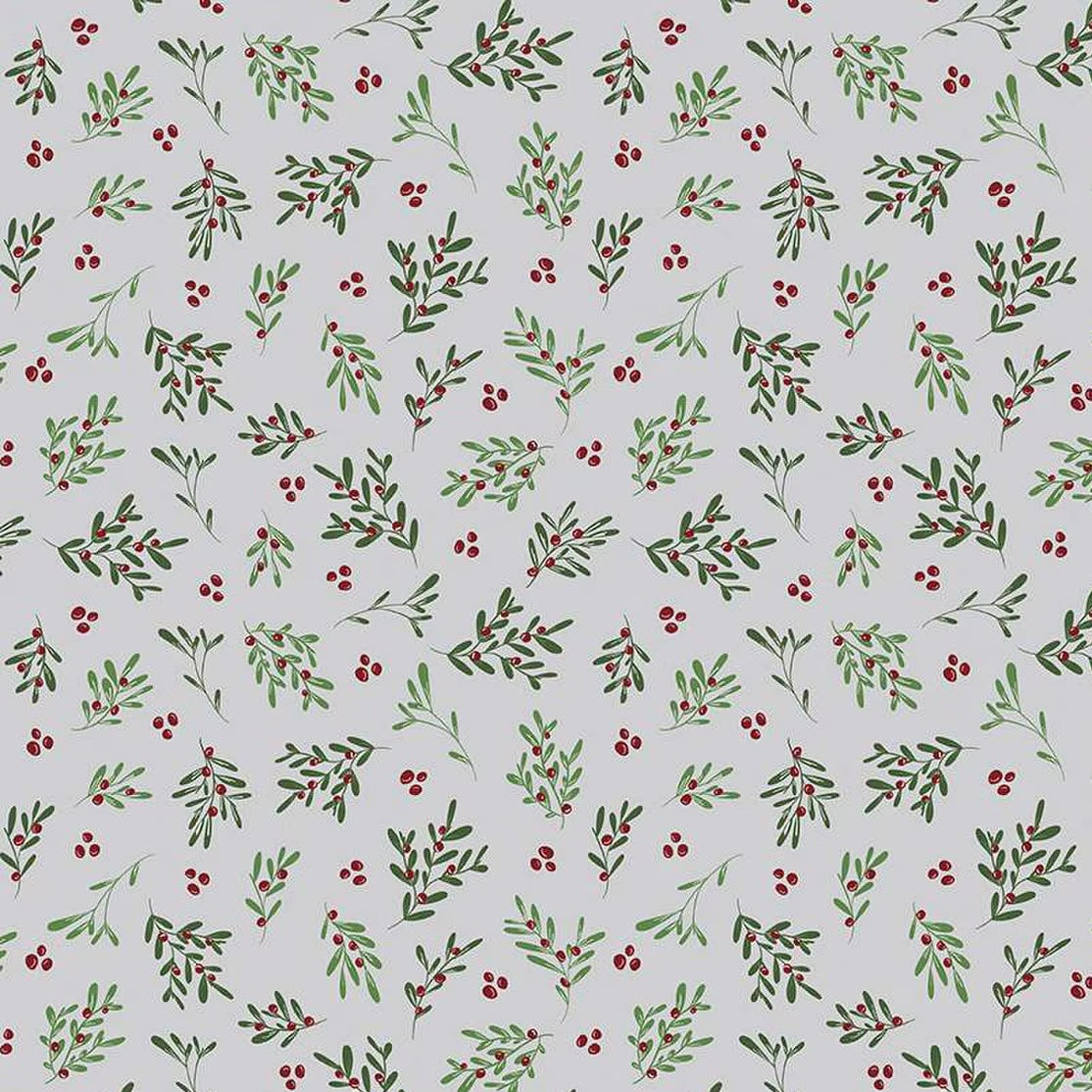 Mistletoe & Holly Mistletoe Silver C16403-SILVER by Beverly McCullough for Riley Blake Designs -Sold in 1/2 Yard Increments