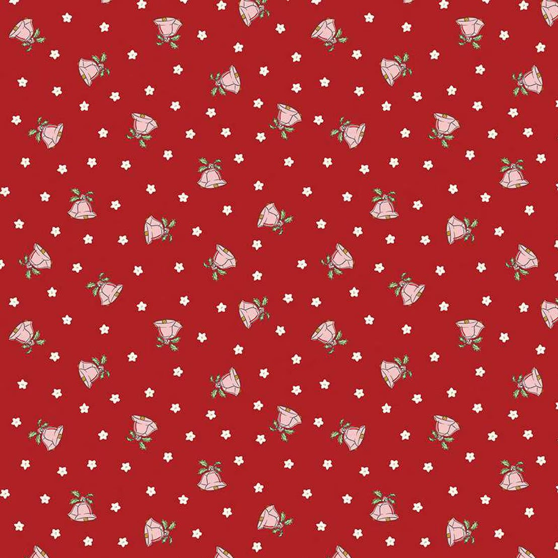 Mistletoe & Holly Mistle Scattered Bells Barn Red C16404-BARNRED by Beverly McCullough for Riley Blake Designs -Sold in 1/2 Yard Increments