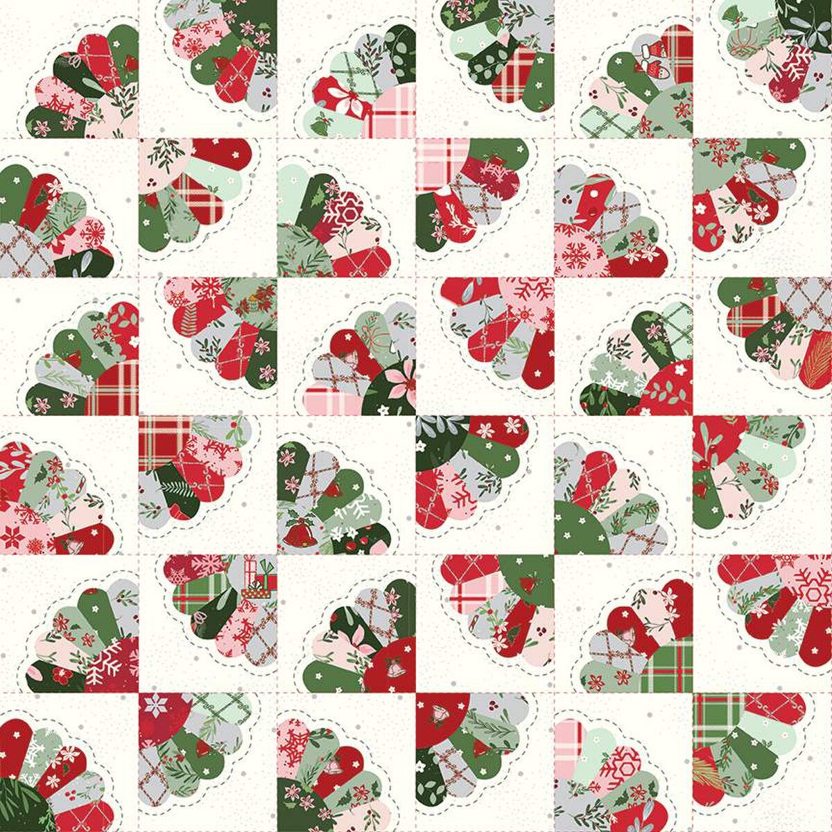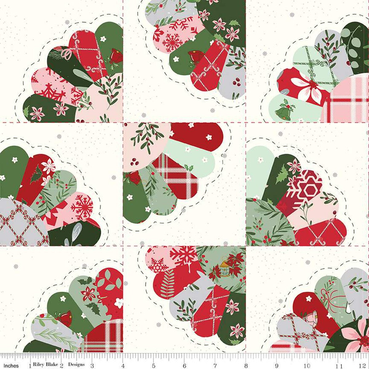 Mistletoe & Holly Dresden Fan Cheater Print Cloud C16408-CLOUD by Beverly McCullough for Riley Blake Designs -Sold in 1/2 Yard Increments