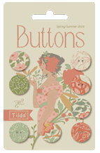 Songbird by TILDA. Coral and Green Buttons (Includes 8 12mm Buttons)