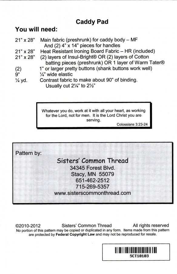 Caddy Pad ~ Full Size (Printed Pattern)