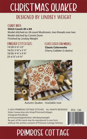 Christmas Quaker Cross Stitch Pattern by Lindsey Weight from Primrose Cottage (Printed Pattern)