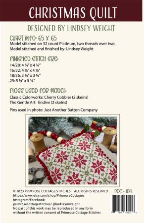 Christmas Quilt Cross Stitch Pattern by Lindsey Weight from Primrose Cottage (Printed Pattern)