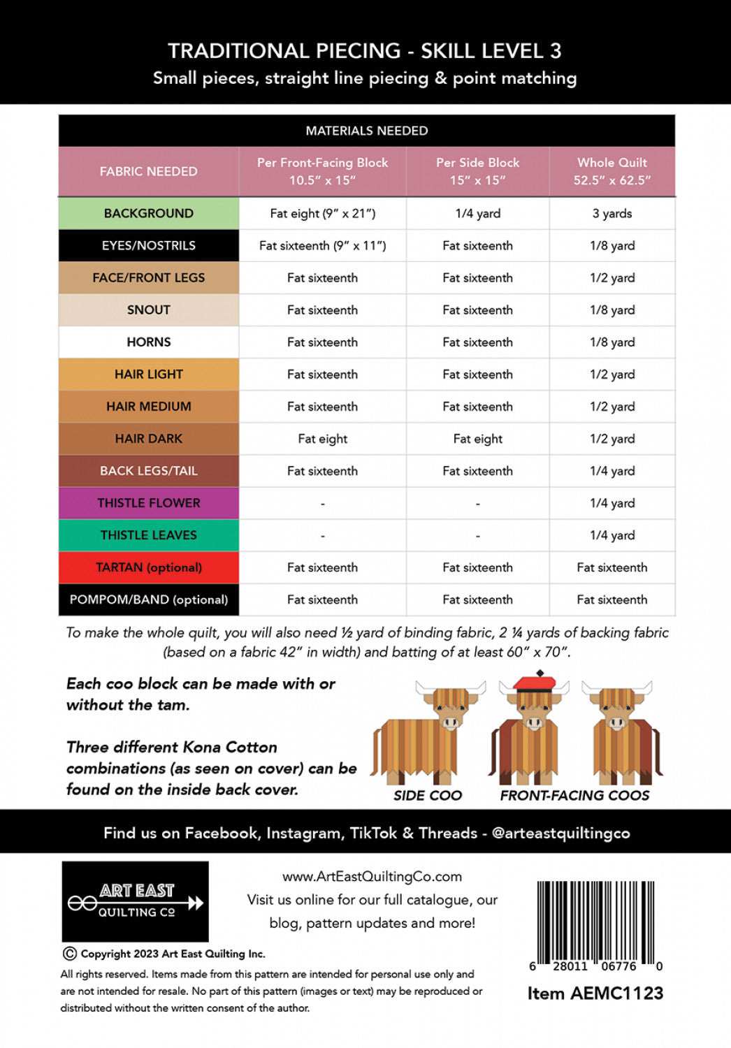 Mini Coos - A Highland Cow Quilt Pattern by Art East Quilting Co (Printed Pattern)