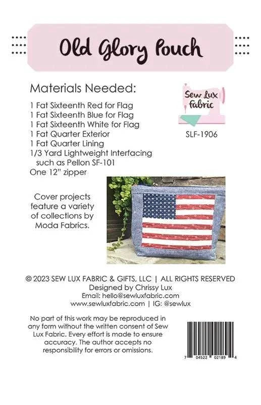 Old Glory Pouch Pattern by Chrissy Lux for Sew Lux Fabric (Printed Pattern)