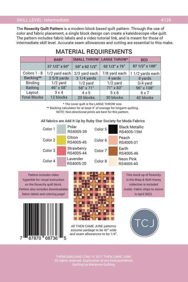 Then Came June, Rosecity Quilt- a great beginner friendly, block based pattern! It is very versatile because you can use FQs or 1/2 yards. Plus, I provide suggestions on how to make it scrappy using only your stash. Meadowland is the pattern you won't be able to stop making! Four sizes provided: 37x50", 50x62", 62x75" and 87x100"