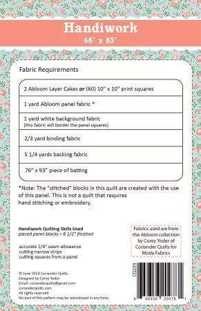 PATTERN Handiwork CQP224 by Corey Yoder of Coriander Quilts