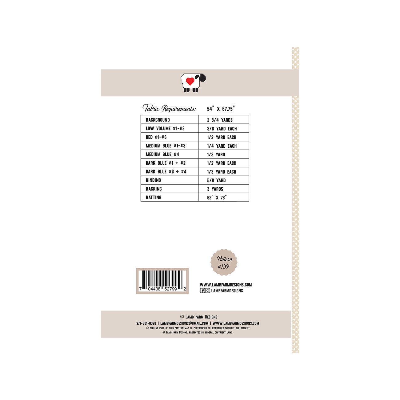 Love American Style Quilt Pattern by Jennie Jo Lamb for Lamb Farm Designs (Printed Pattern)