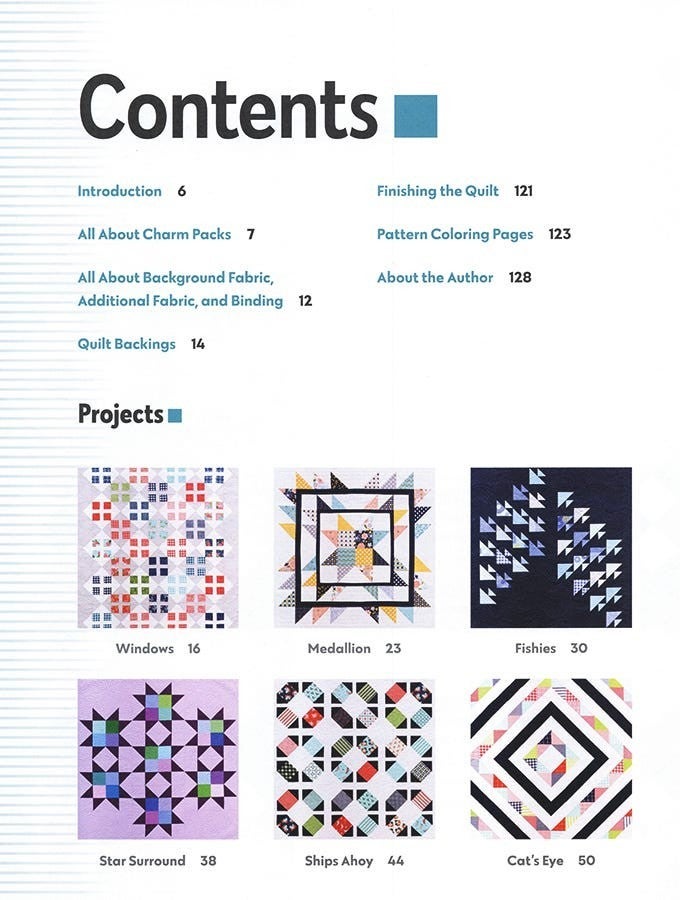 Who can resist a perfectly coordinated and fun-filled fabric charm pack? Now make the most of your growing collection with projects designed with the charm pack lover in mind. Sew colorful and bright quilt projects, each using only one charm pack, one extra fabric, and a background fabric. All 18 projects come in two colorway options with easy to follow instructions and illustrations. Finished creations have multiple uses! Projects are perfectly sized for a baby or child, but also make for unique house decor as table toppers, wallhangings, or the perfect gift for friends and loved ones. Plus, you'll never need another excuse to keep buying those irresistibly fun charm packs!