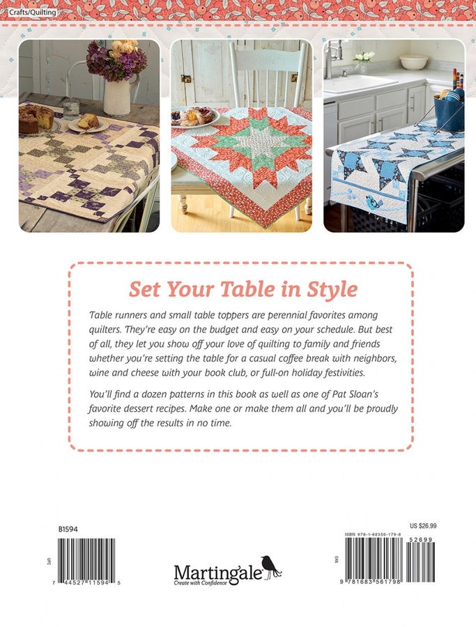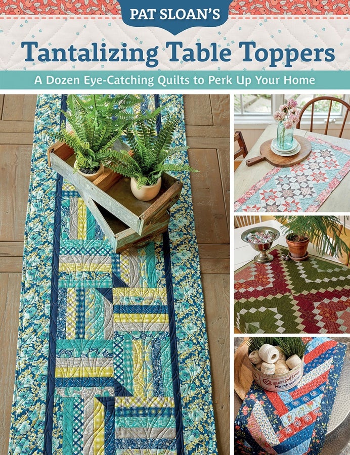 Pat Sloan's Tantalizing Table Toppers - Table runners and small table toppers are perennial favorites among quilters. They're easy on the budget and easy on your schedule. But best of all, they let you show off your love of quilting to family and friends whether you're setting the table for a casual coffee break with neighbors, wine and cheese with your book club, or full-on holiday festivities. You'll find a dozen patterns in this book as well as one of Pat Sloan's favorite dessert recipes. Make one or make them all and you'll be proudly showing off the results in no time.
