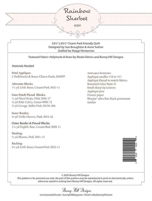 Rainbow Sherbet by Bunny Hill Designs (Printed Pattern)