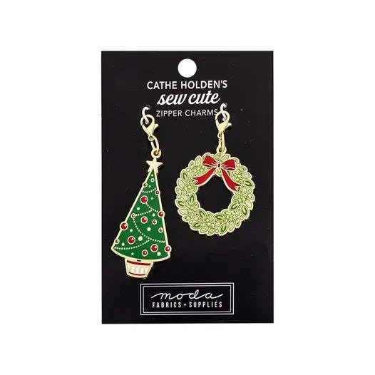 Set of Two Tree & Wreath Sew Cute Zipper Charms by Cathe Holden for Moda