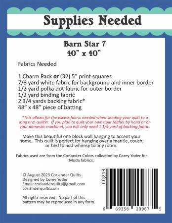 Barn Star 7 Pattern by Corey Yoder of Coriander Quilts (Printed Pattern)