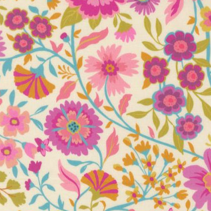 Parlor Happy Blooms Cream 11960 11 by Crystal Manning for Moda Fabrics. Sold in 1/2 Yard Increments