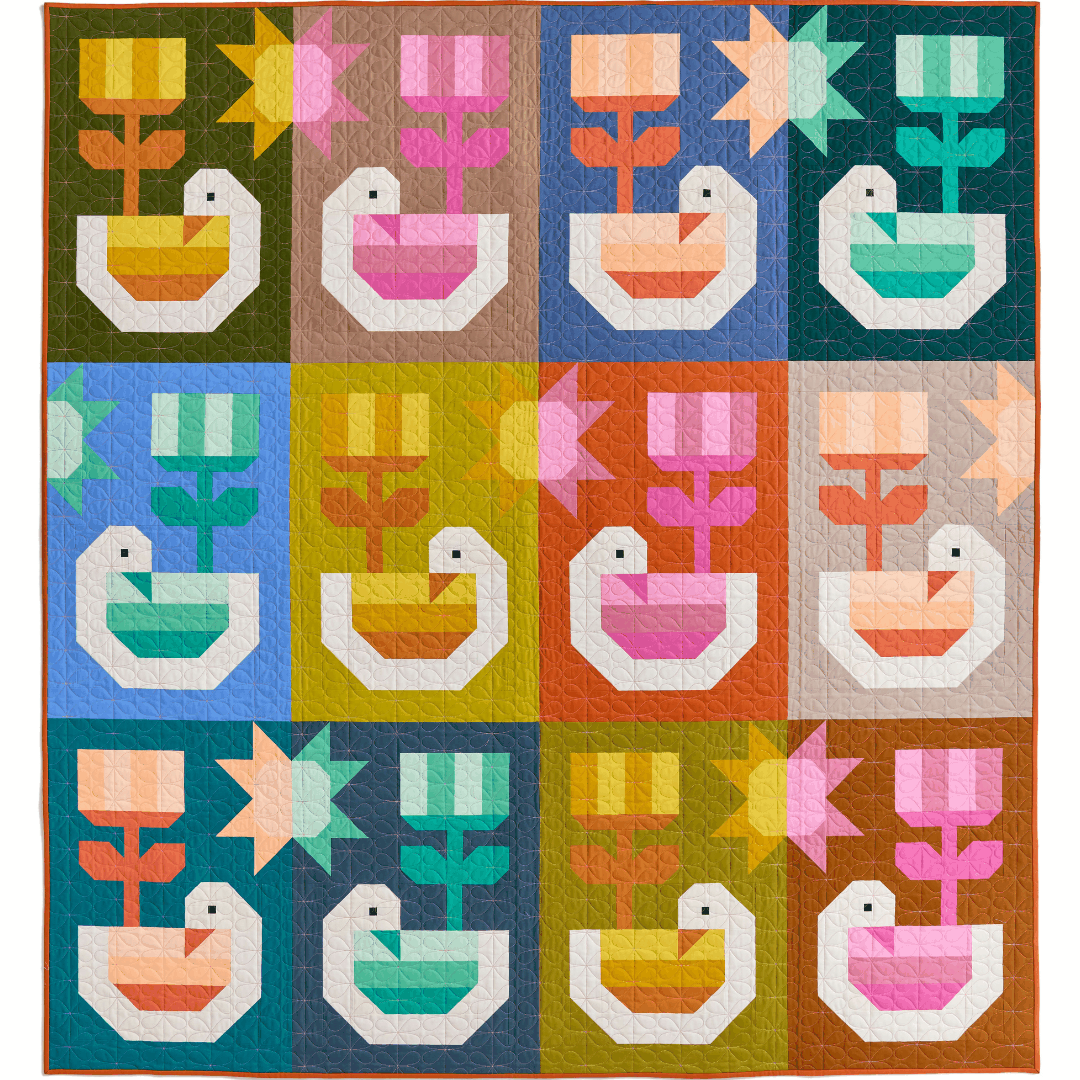 Introducing Sunshine, a reimagined pattern by Elizabeth Hartman. This kit features the pattern designed by Elizabeth Hartman colored using the beautiful Bella Solids from Moda Fabrics.