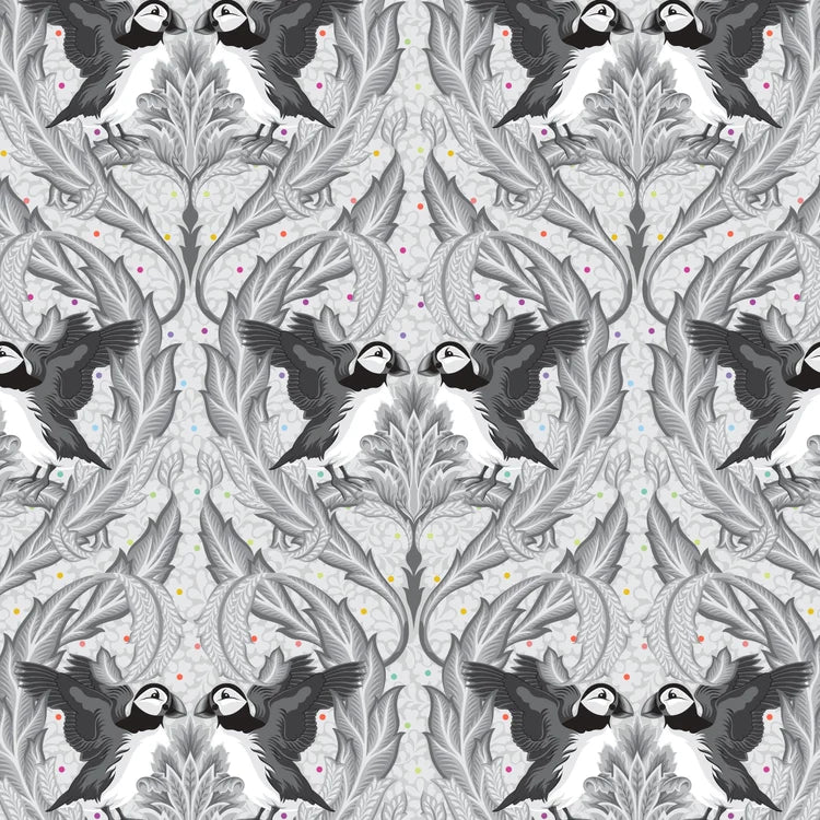 Graywork Huffin & Puffin Whisper PWTP260.WHISPER by Tula Pink for Free Spirit Fabrics. Sold in 1/2 Yard Increments