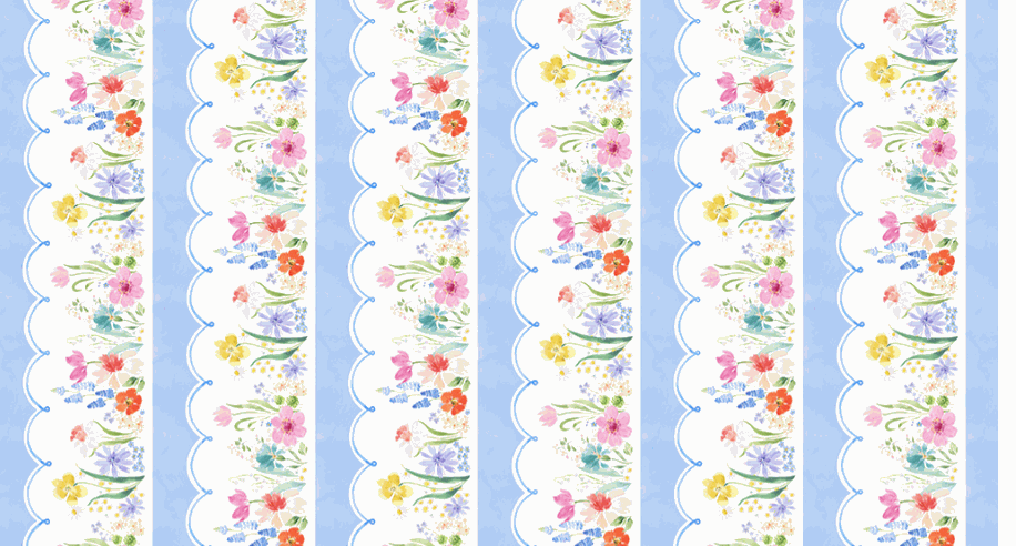 Spring Cheer Digital Pictorial Stripe Light Denim Y4688-87 by Heatherlee Chan for Clothworks. Sold in 1/2 Yard Increments
