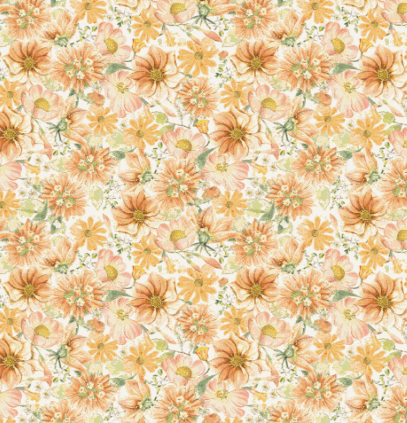 Hummingbird Days Digital Packed Floral Light Orange Y4727-35 by Katie Pertiet for Clothworks. Sold in 1/2 Yard Increments