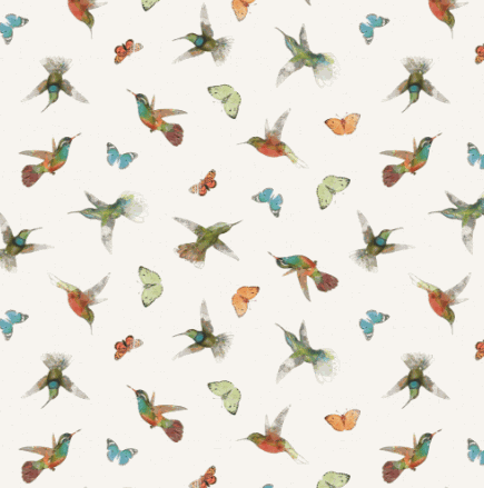 Hummingbird Days Digital Hummingbirds Light Cream Y4728-2 by Katie Pertiet for Clothworks. Sold in 1/2 Yard Increments