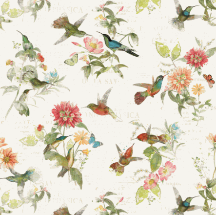 Hummingbird Days by Katie Pertiet for Clothworks. Digital Toile Light Cream