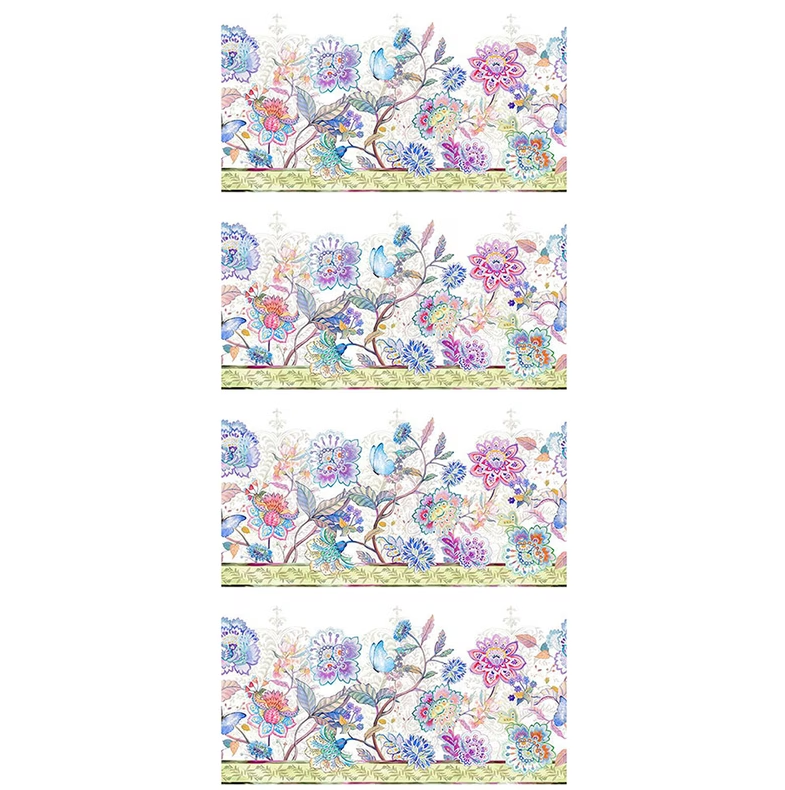 The Daydreams collection by Jason Yenter for In the Beginning Fabrics invites you into a world of whimsy with its dreamy watercolor palette and serene nature motifs. This fabric is digitally printed, giving it brighter, more vibrant colors and beautiful detail not available in traditional, screen-printed fabrics. This soft floral pattern features blue butterflies, oversized flowers, and leafy designs against a white fabric.