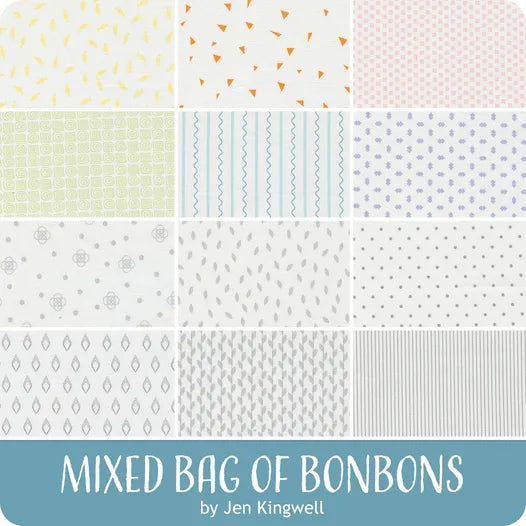 (40) Mixed Bag of Bonbons Jelly Roll 18250JR by Jen Kingwell for Moda Fabrics.
