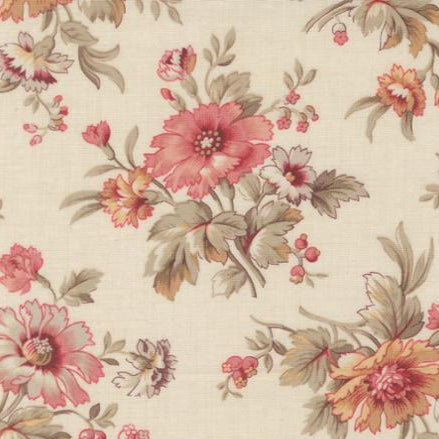 Joie de Vivre is a soft and subtle interpretation of early 19th century French prints and is evocative of an old French parlor room or a lady's dressing room. The larger multi-colored floral prints lend themselves to floral fussy cutting - a wonderful way to create pretty appliqués and hexagons.