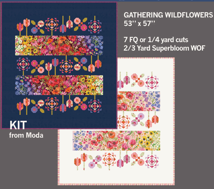 This kit includes the Gathering Wildflowers Pattern (RPQP GW161) and Superbloom fabrics by Robin Pickens to make the 52" x 57" quilt top and binding - white background color ONLY (KIT48780).