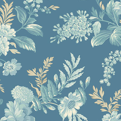 Sewing Bird Bed of Roses Indigo A-1600-B by Edyta Sitar of Laundry Basket Quilts for Andover - Sold in 1/2 YD Increments