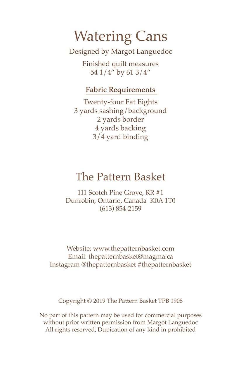 Watering Cans Quilt Pattern by Margot Languedoc for Laundry Basket Quilts (Printed Pattern)