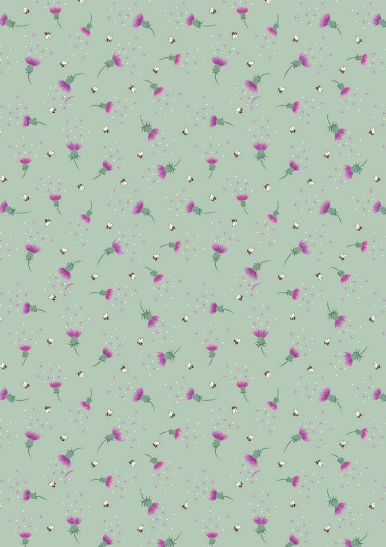 A Celtic Summer from Lewis & Irene Fabrics. Bee Thistle on Sage Green
