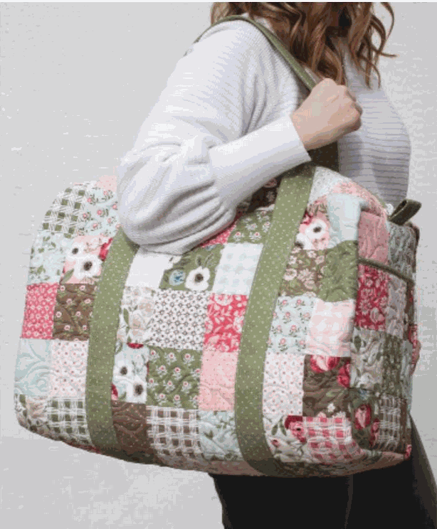 Patchwork Duffle Kit featuring Lovestruck by Lella Boutique for Moda- kit includes pattern by Knot & Thread Designs and fabrics to complete the 12x20x9" duffle bag.