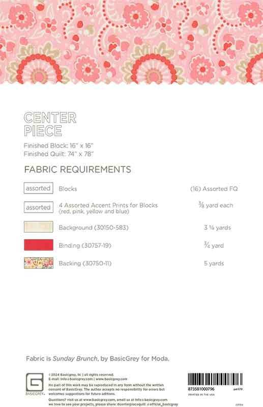 Center Piece Quilt Kit featuring Sunday Brunch by BASIC GREY for Moda Fabrics