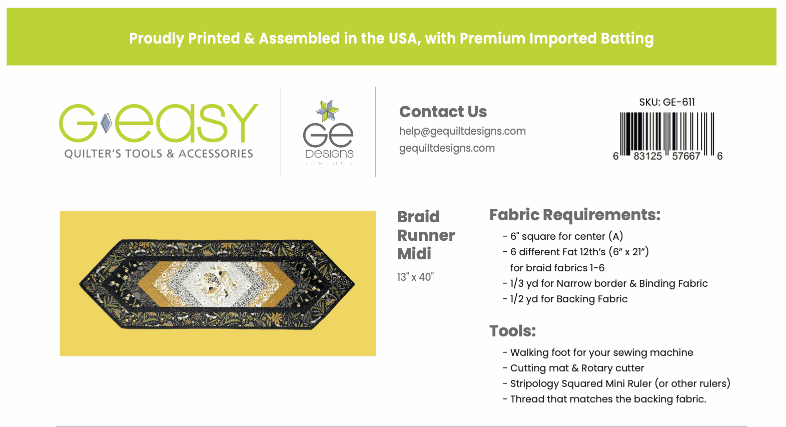 Quilt-As-You-Go Batting Kit - Braid Runner Midi