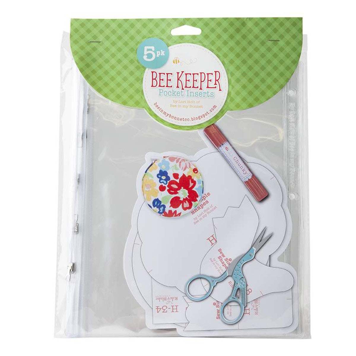 The Binder Pocket Inserts by Lori Holt of Bee in my Bonnet are designed to be used with her Bee Keeper Binder. They prevent degradation of paper inserts. The transparent plastic with zipper provides easy readability. They are three-hole punched and ready to use. One package includes five inserts. Size is 9" x 12".