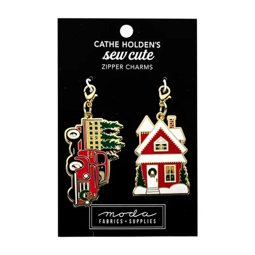 Truck & House Zipper Charms are the perfect finishing touch for your latest project. Package includes a set of two gold plated charms designed by Cathe Holden for Moda Fabrics. Truck measures: 1.75" x 1.25" House measures: 1.5" x 1.25"