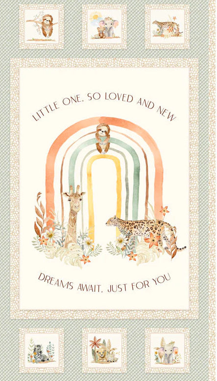 Welcome to the Mini Menagerie, a charming fabric collection by Audrey Jeanne Roberts, where the animal kingdom's little ones come to life! The adorable panel and coordinating prints are perfect for everything from quilts to decorating a nursery. The sweet designs will help to create a soothing and imaginative space for any baby.