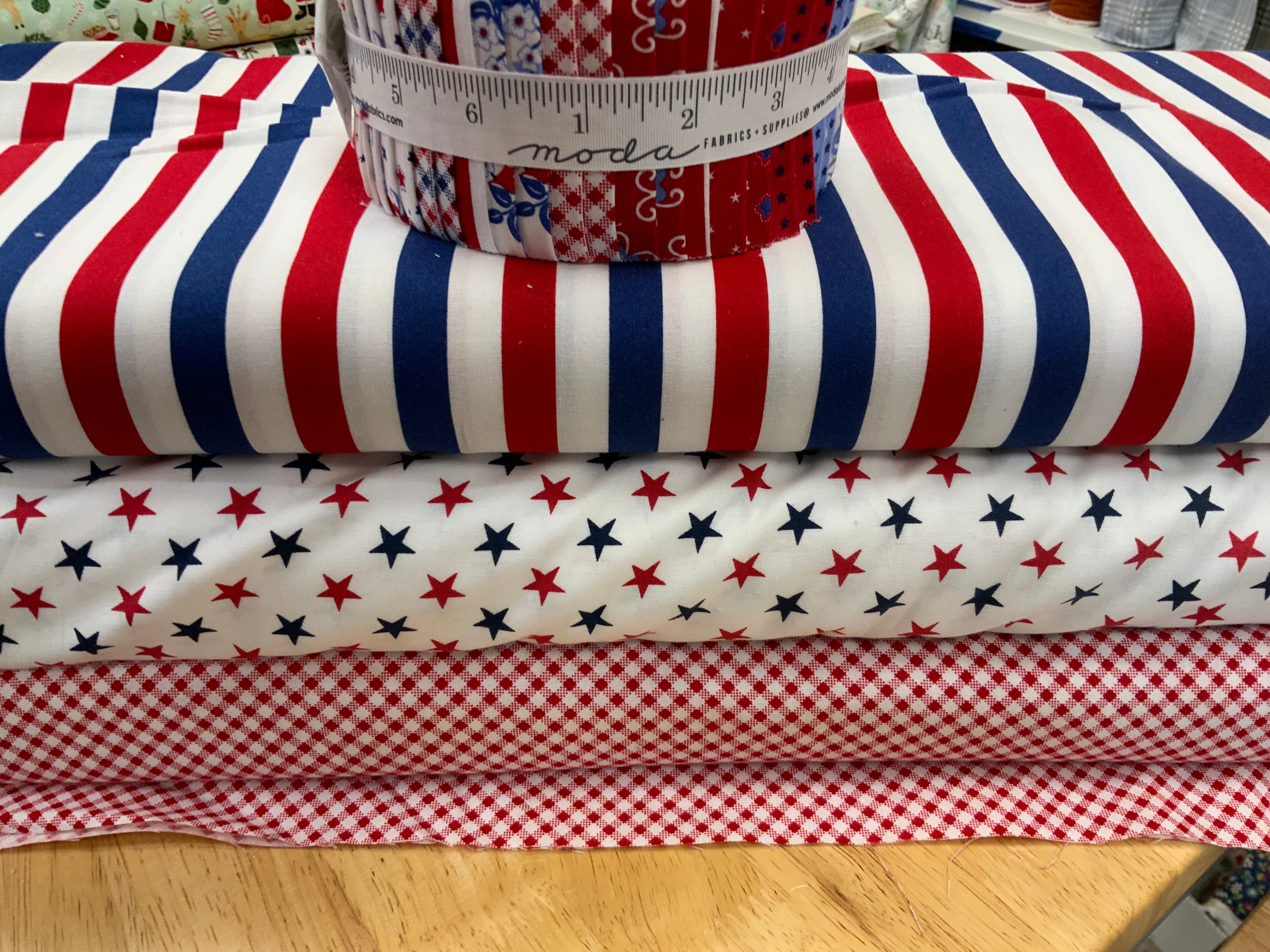 This Project Jelly Roll Quilt Kit features the pattern Luster by Sarah Sumbera of Copper Kettle Quilt Company and the fabric Star Spangled by April Rosenthal.