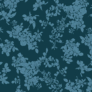 Rosa Leaves Teal 91157-64 by Adriana Picker for Figo Fabrics. Sold in 1/2 Yard Increments