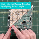 · 45 degree line makes quick work of trimming half-square triangle blocks.