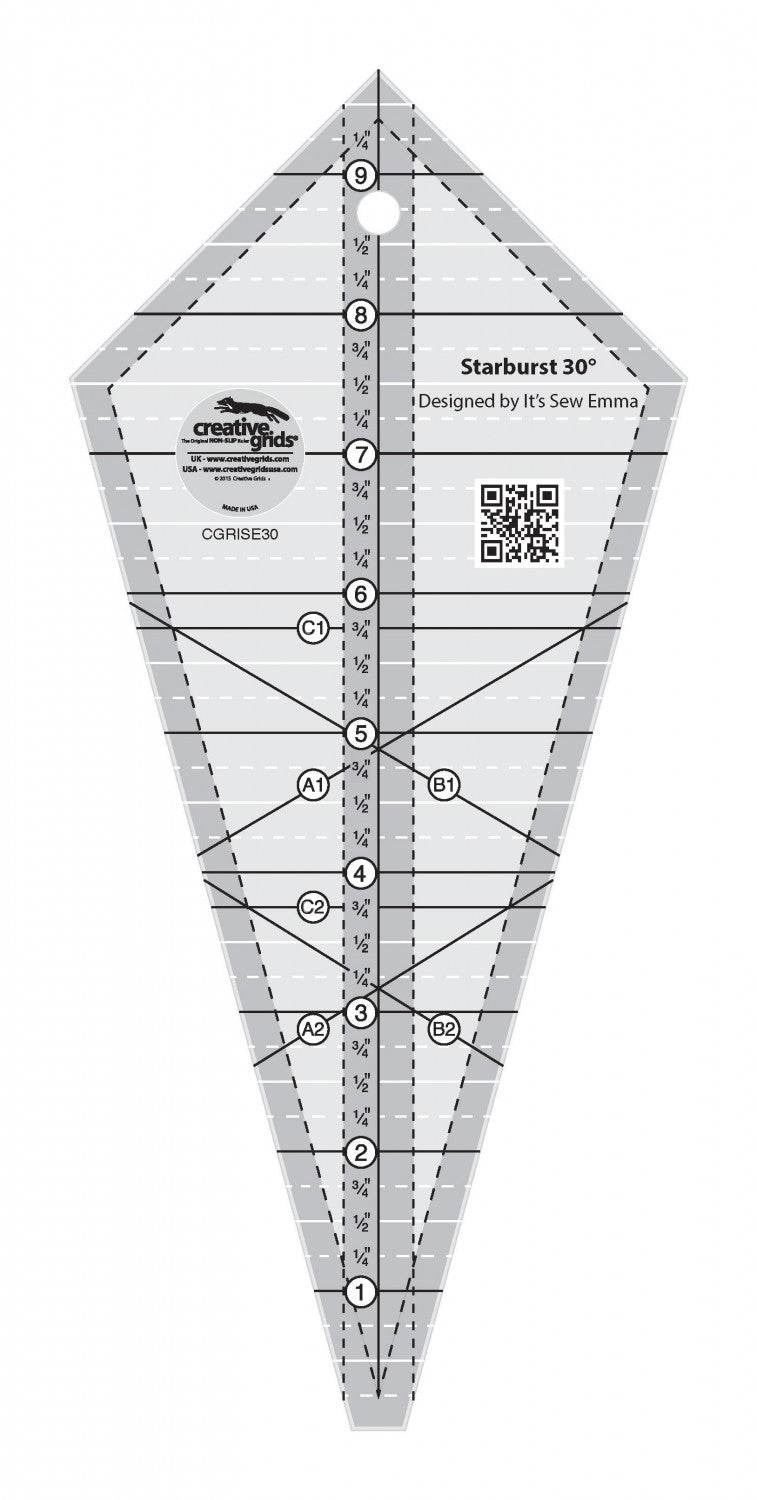 Creative Grids Starburst 30 Degree Triangle Quilt 9-1/2in Ruler CGRISE30