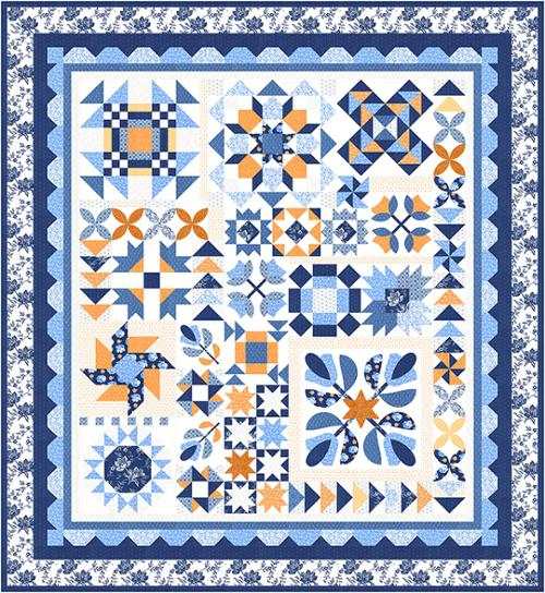 This is a boxed kit that includes the pattern booklet and fabrics in the Denim & Daisies collection to make the 66" x 72" quilt top and binding.
