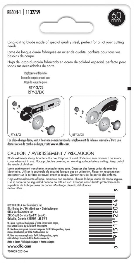 Olf Endurance 60mm Rotary Replacement Blade- You create projects to last a lifetime and our new OLFA Endurance Rotary Blade cuts twice as long and fits all OLFA 60mm rotary cutters. It’s the perfect marriage of precision and quality that you expect from OLFA: it cuts effortlessly and retains its edge longer.