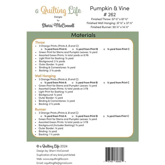 Pumpkin & Vine Table Runner Kit featuring fabrics from Sheri & Chelsi for Moda Fabrics