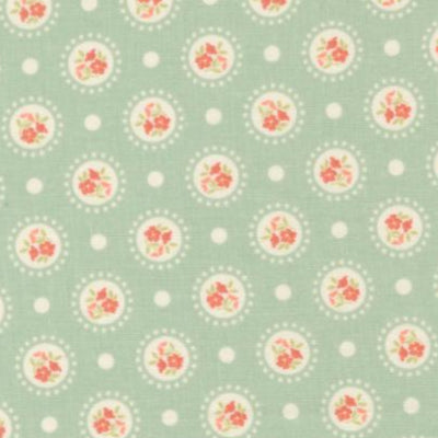 Sunbonnet Flower Dots Dusty Blue 31762 21 by Heather Briggs of My Sew Quilty Life for Moda Fabrics. Sold in 1/2 Yard Increments